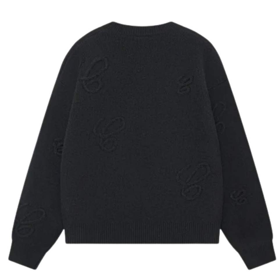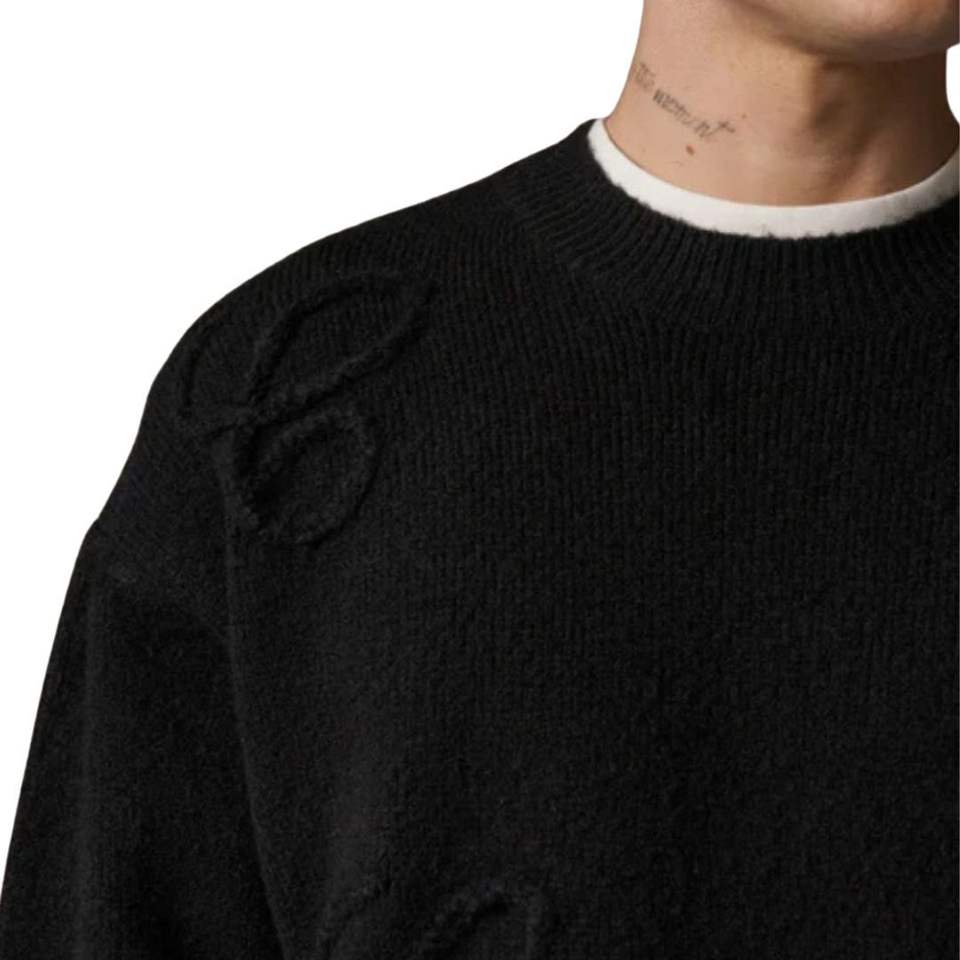 Pull en tricot noir avec appliqué Script, col rond brodé, en coton premium, confortable, pour l'hiver, mode masculine