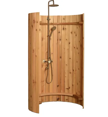 Douche sculpturale en bois sur colonne (extérieur / bord de piscine)