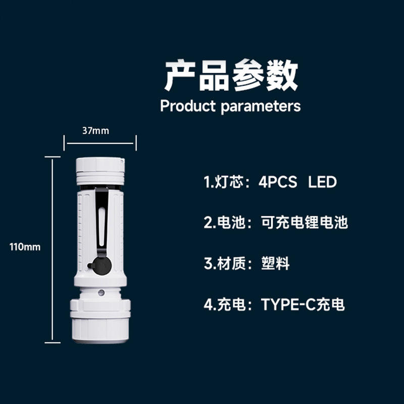 Mini lampe torche Sd-14 400 mAh rechargeable à LED avec clip métallique, portable pour usage extérieur