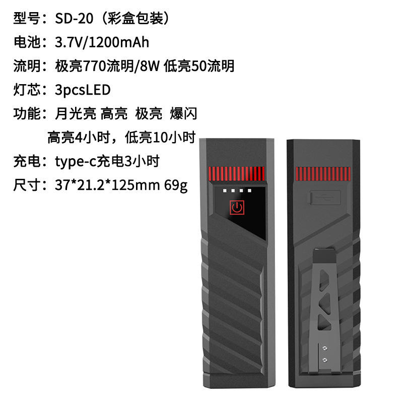 Lampe torche haute intensité Sd20, 800 lumens, type C rechargeable, LED tactique, extérieur, EDC, portable, avec queue magnétique