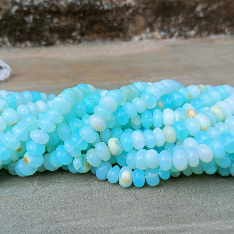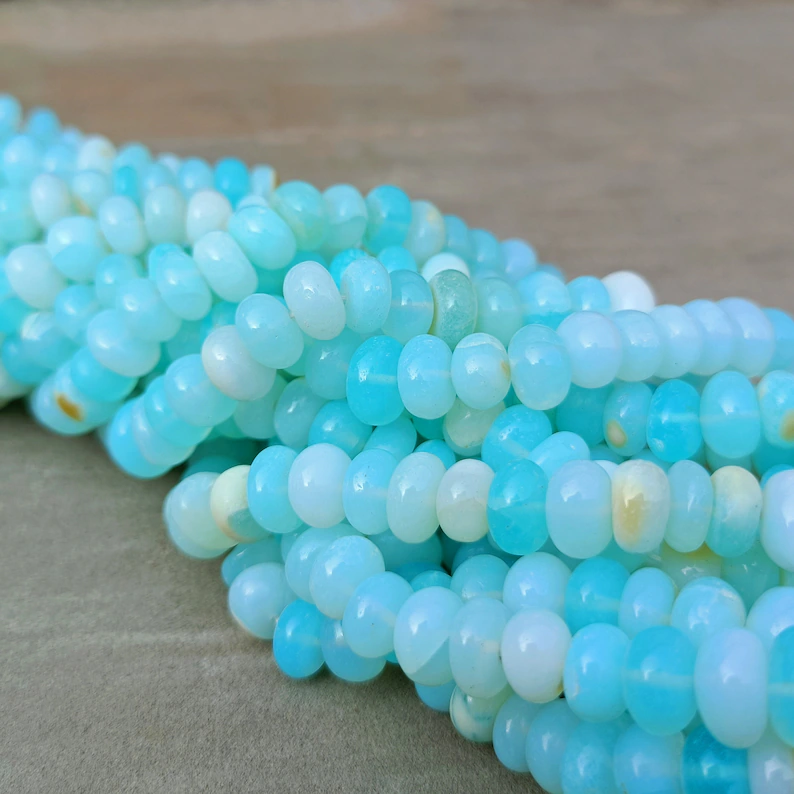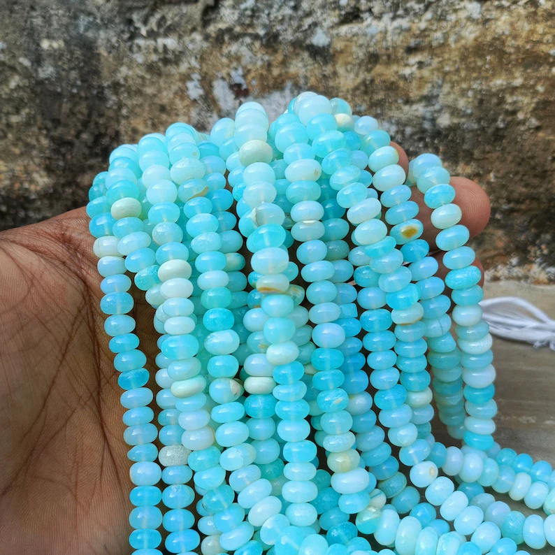 16 "naturel péruvien bleu opale lisse Rondelle perles de pierres précieuses en vrac brins en gros 8mm bonbons opale perles pour la fabrication de bijoux