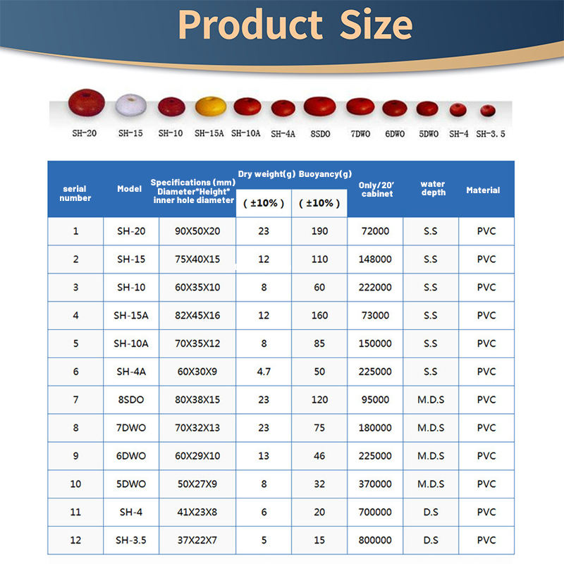 Flotteur de pêche en mer, flotteur de pêche à la ligne, flotteur de pêche en PVC personnalisé