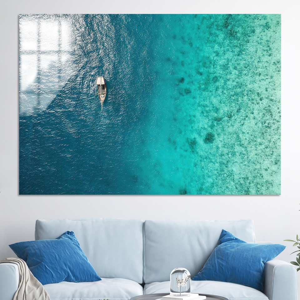 Impression sur verre de paysage marin - Grande toile d'art océanique pour la décoration intérieure, Verre
