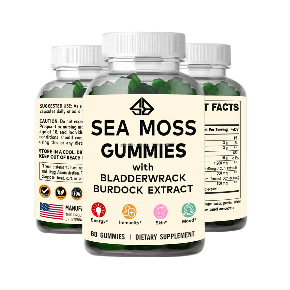 Complément de Mousse de Mer, Fucus et Racine de Bardane : Énergie, Immunité, Éclaircissement de la Peau, Soulagement du Stress – 60 Gummies pour Toute la Famille