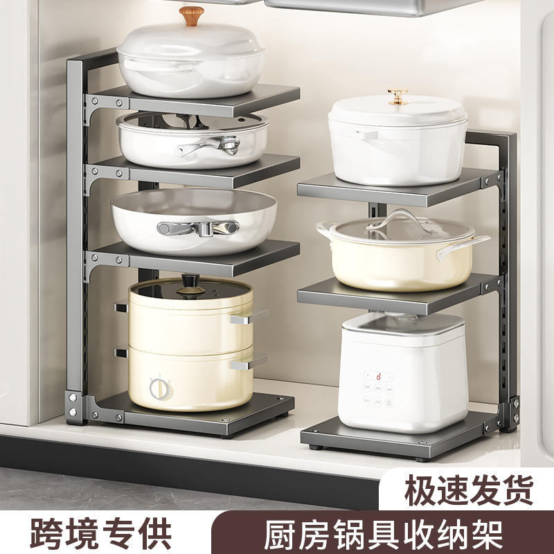Étagère à casseroles grise, simple, 4 niveaux