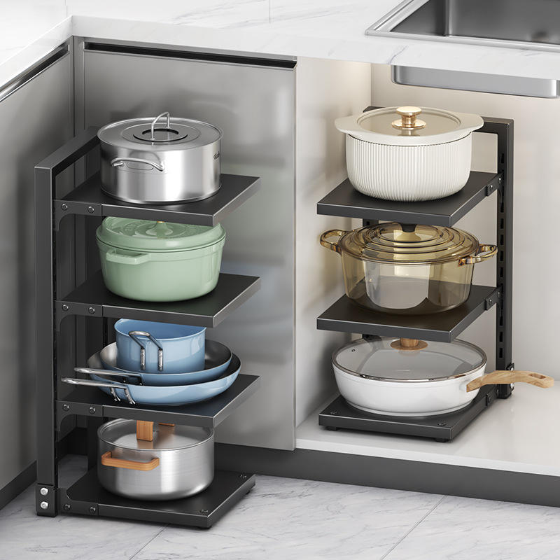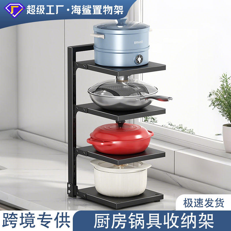 Étagère à casseroles Sea Shark en acier au carbone, 3 niveaux, pour comptoir, organisateur de rangement pour ustensiles de cuisine, style moderne et simple