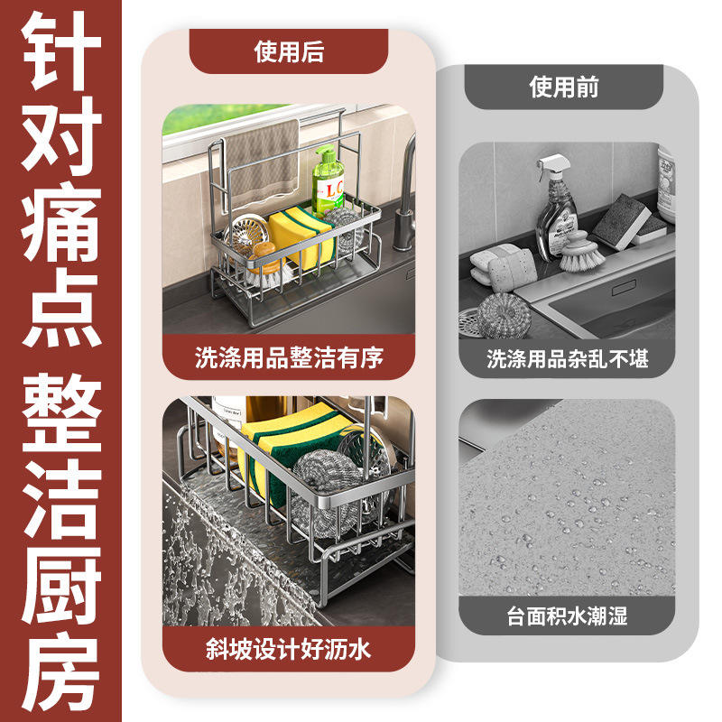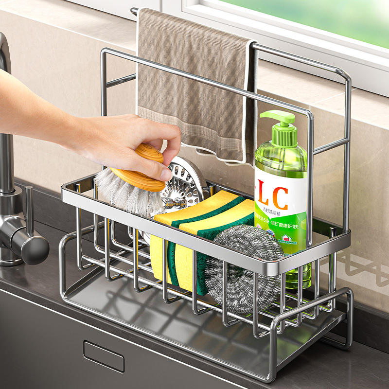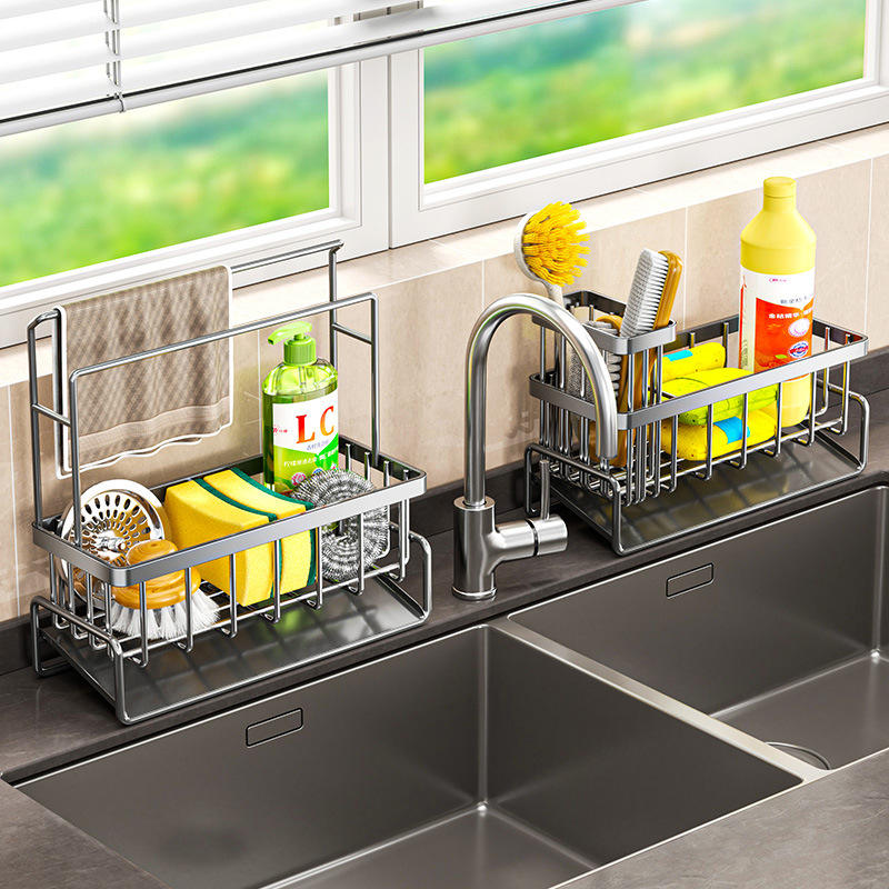 Égouttoir de cuisine multifonctionnel en acier au carbone Sea Shark pour évier, support pour torchons et organisateur de savon à vaisselle
