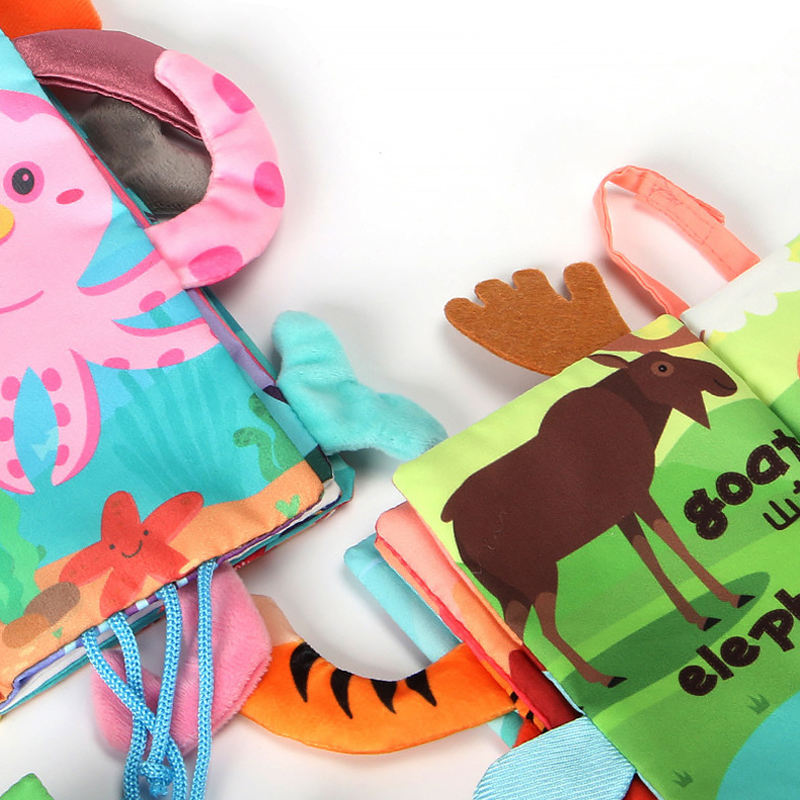 SeaMind modèles personnalisés ou langue enfants éducatifs doux tissu livre bébé jouets dessin animé Animal queue tissu livre pour bébés