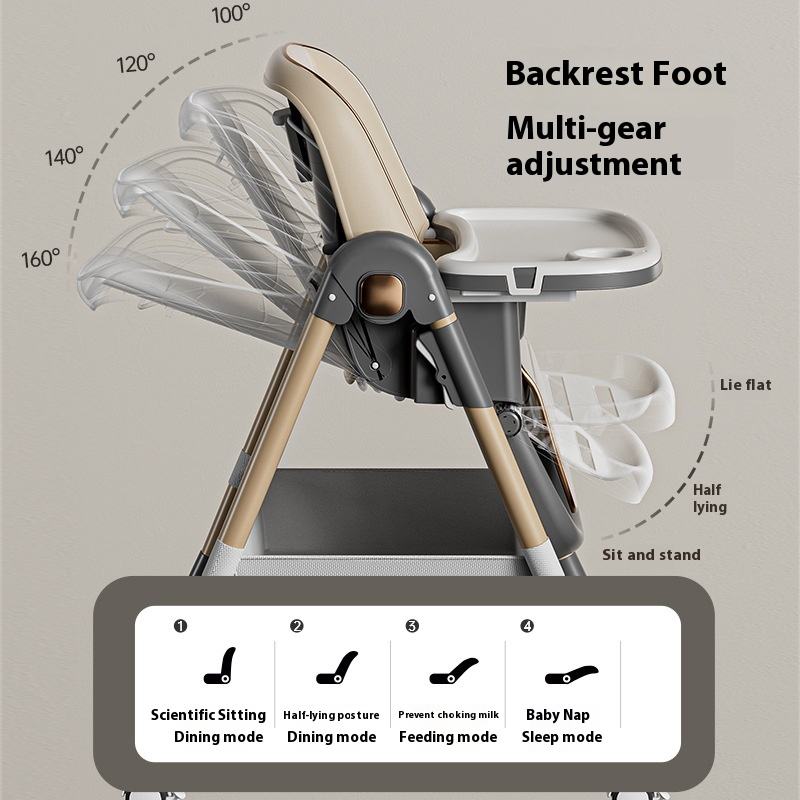 Chaise Haute Multifonctionnelle SeaMind pour Bébé et Enfant, Design Moderne, Hauteur Réglable, Pliable et Inclinable, en Métal et Plastique Durable