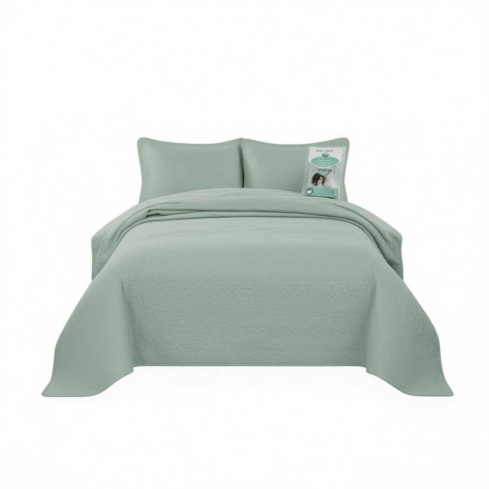 Ensemble de couvre-lit réversible Seafoam en polyester, style simple et uni, avec surpiqûres