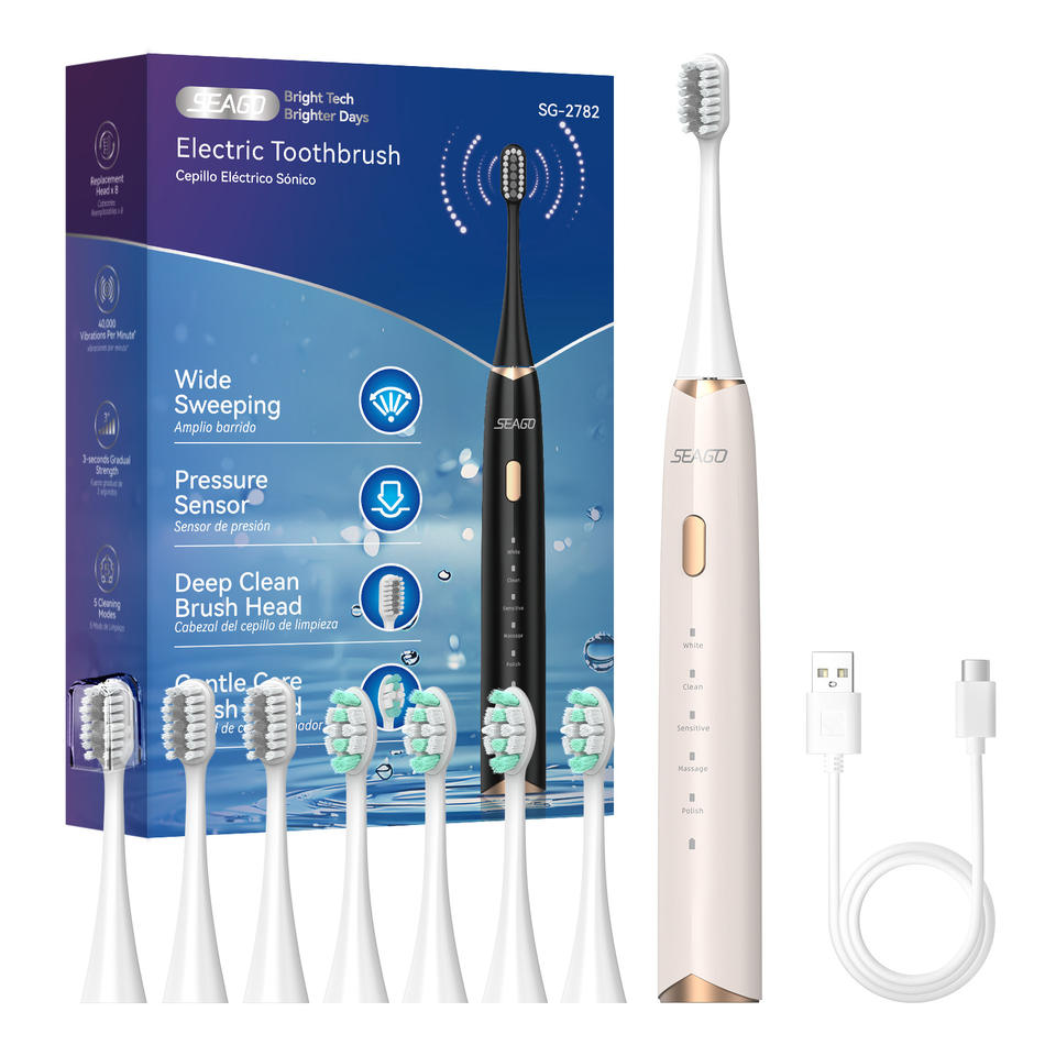 Seago – brosse à dents électrique intelligente, rechargeable par type-c, étanche IPX7, 5 modes, affichage LED, pour adultes
