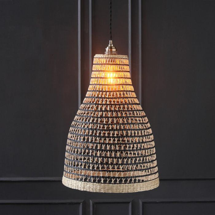 Product Name:Seagrass Ceiling Lampshade - Natural & Black Woven