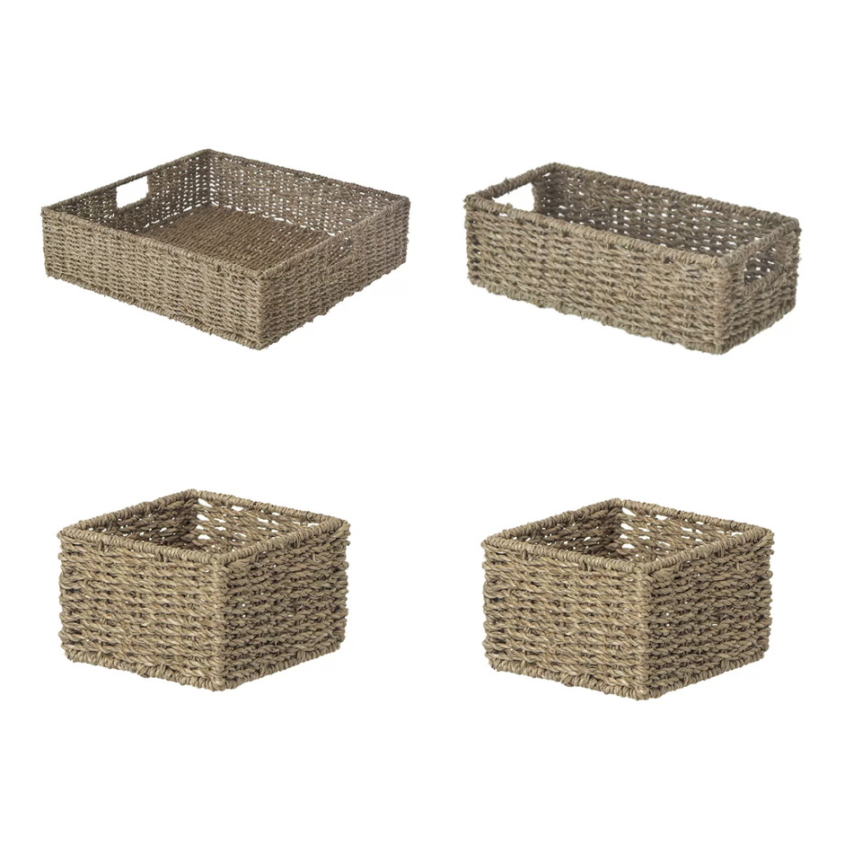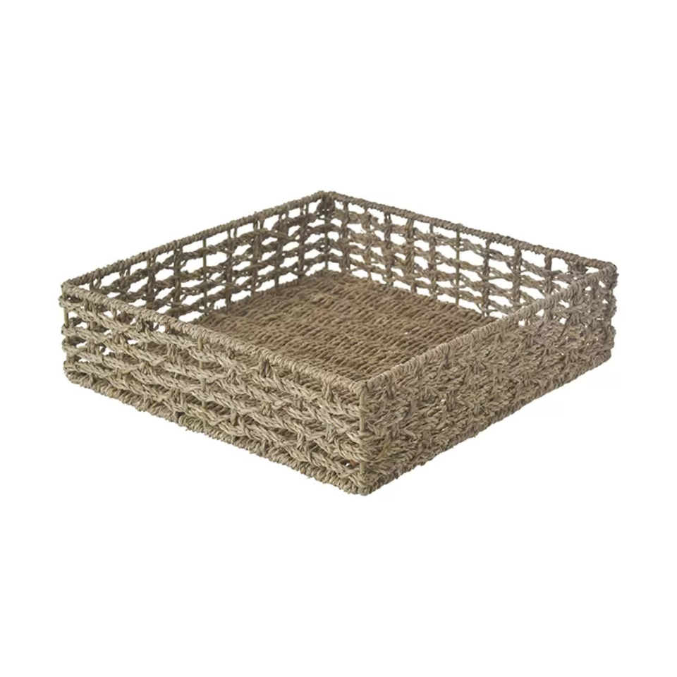 Panier de rangement rustique en jonc de mer, logo personnalisé OEM, tressé à la main, fonction suspendue, fournisseur d'usine pour la rentrée scolaire