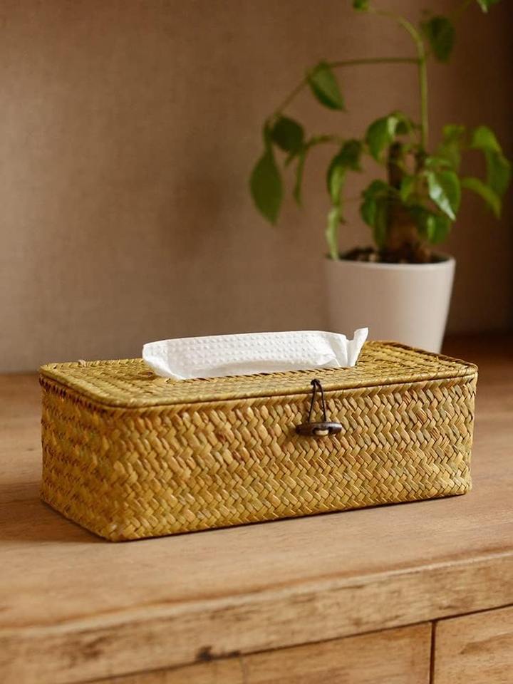 Boîte à mouchoirs en herbe de mer, rectangulaire, tissée à la main, boîte de rangement écologique, décoration naturelle pour la maison et la maison, vente en gros du Vietnam