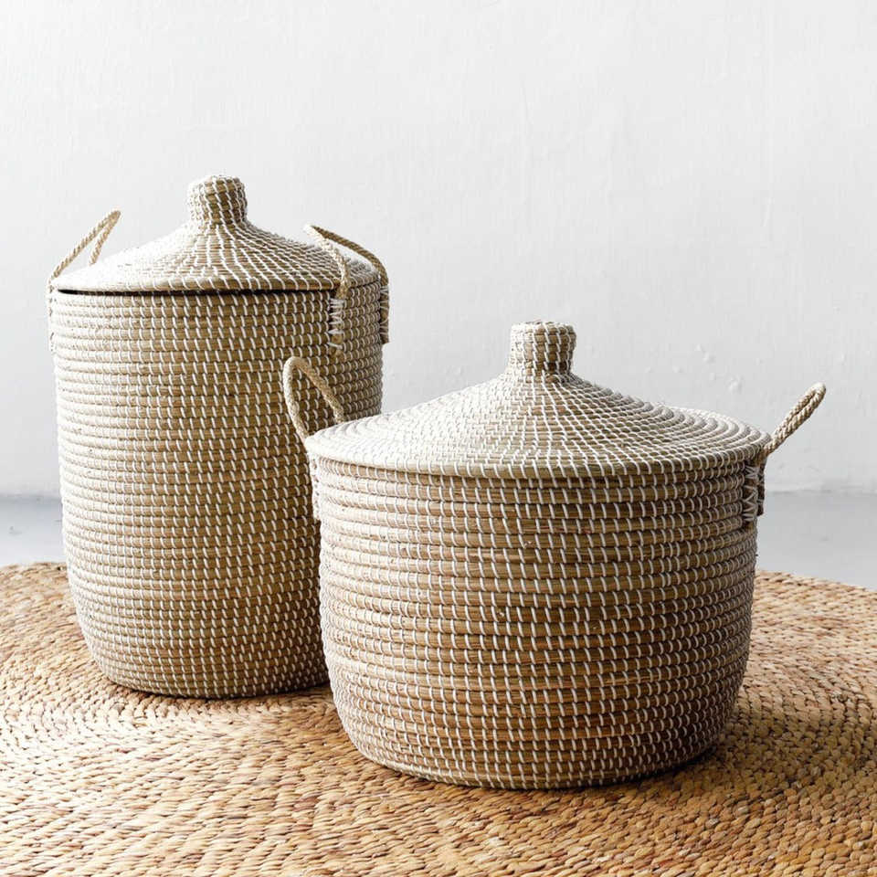 Seagrass clothing storage basket bin factory direct price straw sea grass baskets containers