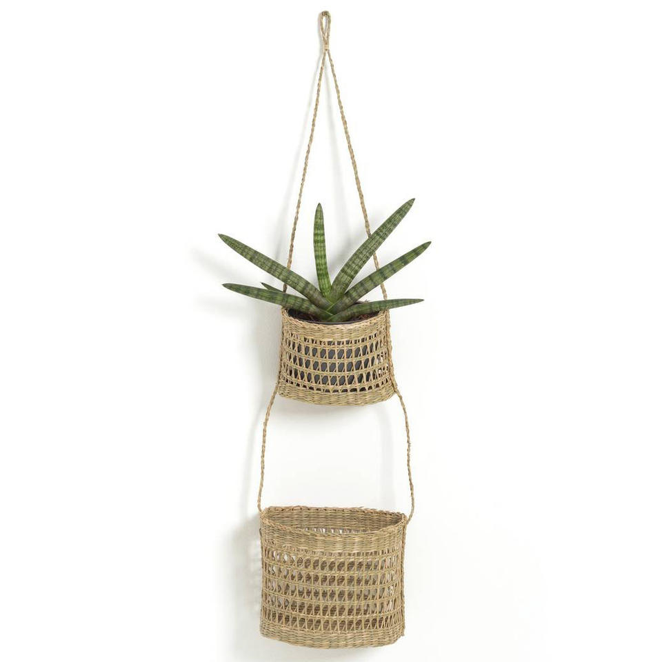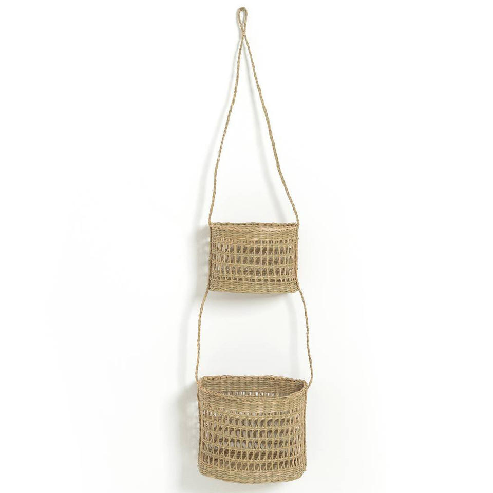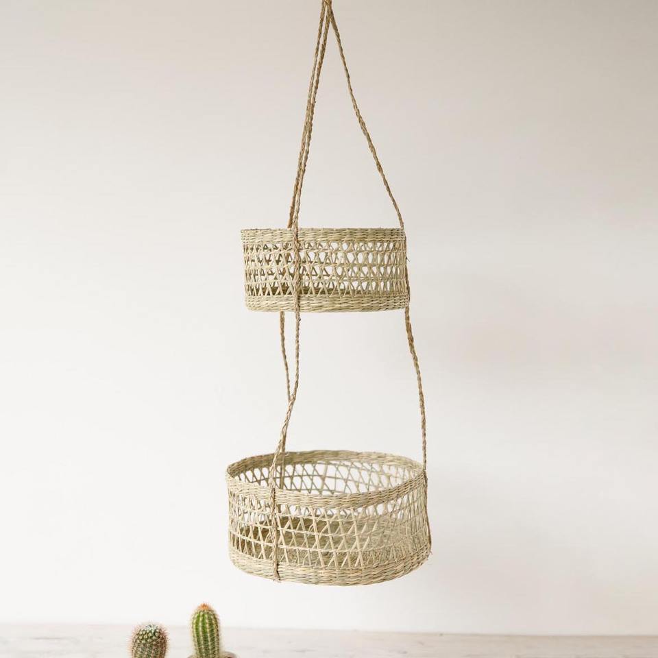 Seagrass double hanging baskets hand weave 2 tier fruit basket low cost kitchen organizers