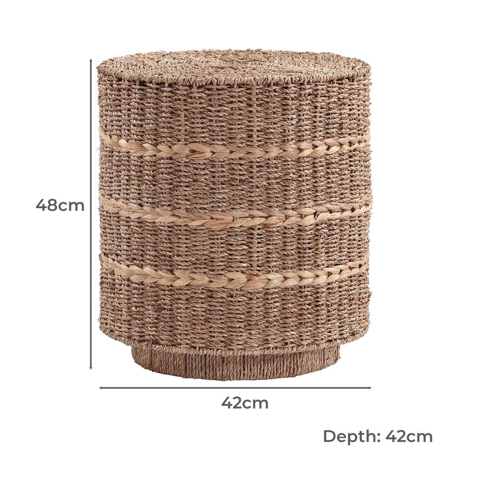 Size: D16,5 x H19 inch:Seagrass side table with water hyacinth accent