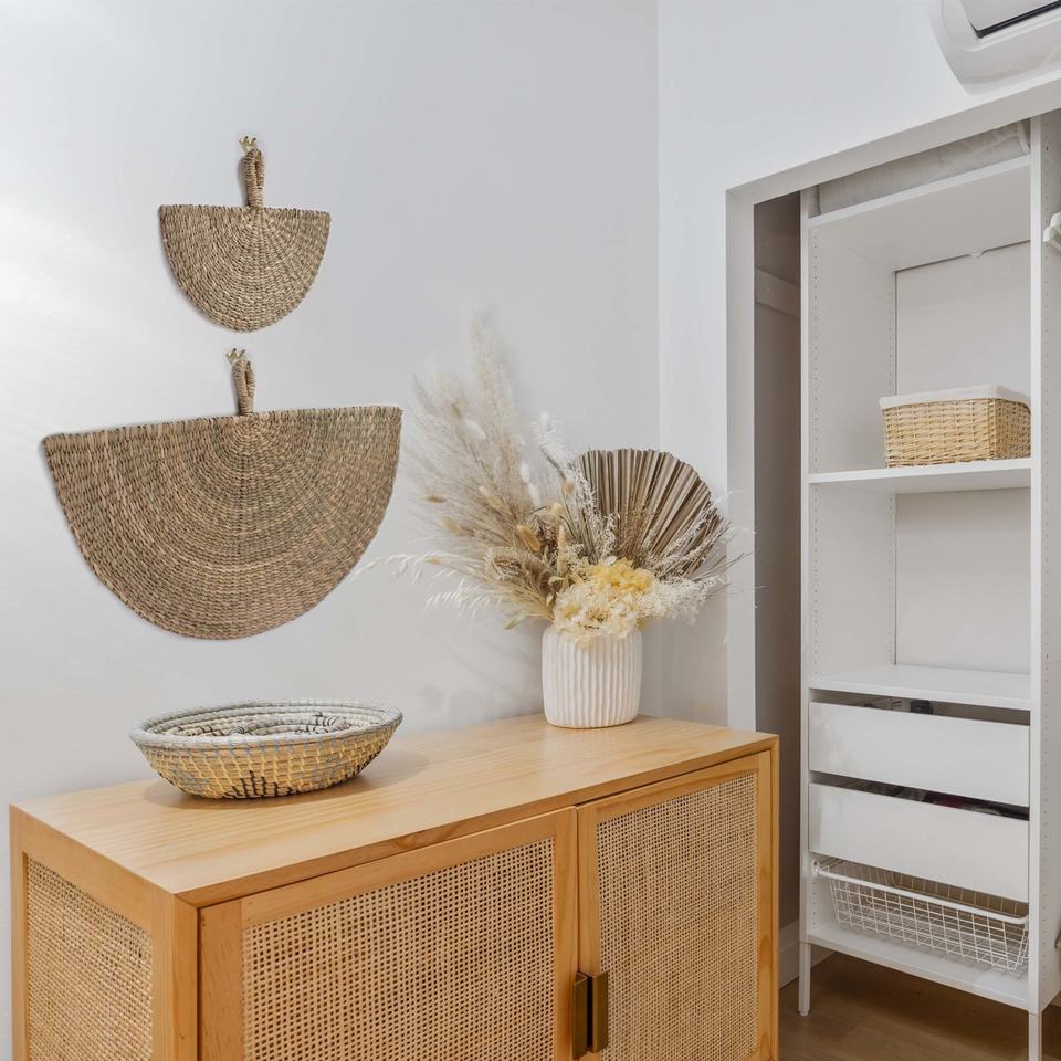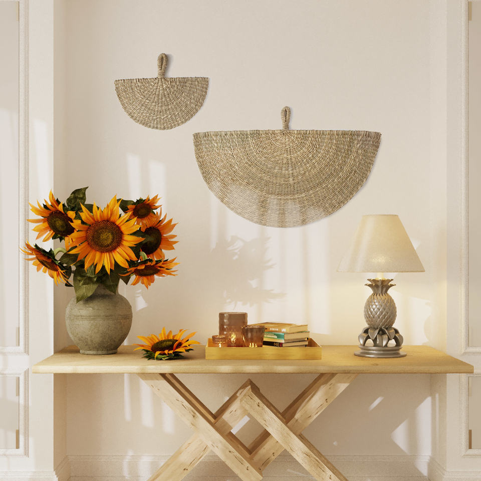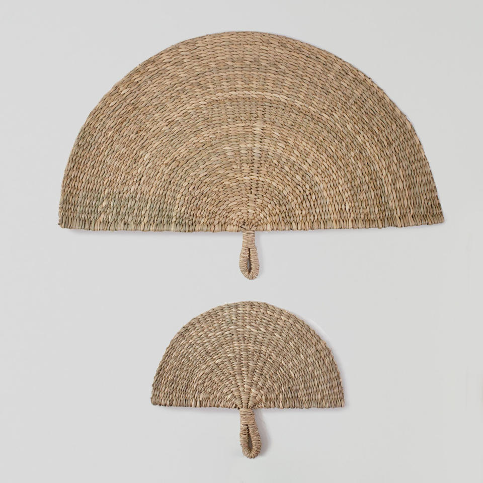 Seagrass straw fans for event wedding guests semi circle sea grass fan raffia wall hangings