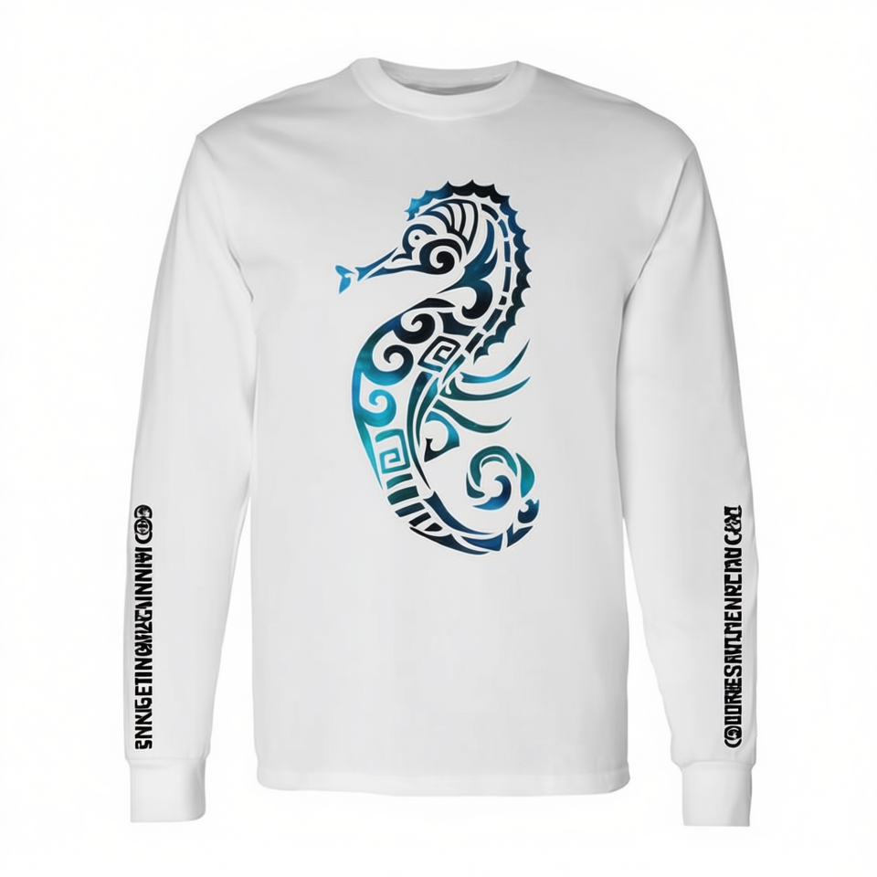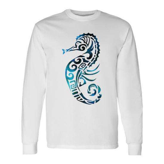 T-shirt à manches longues Seahorse Ocean Design Turquoise Tribal Art
