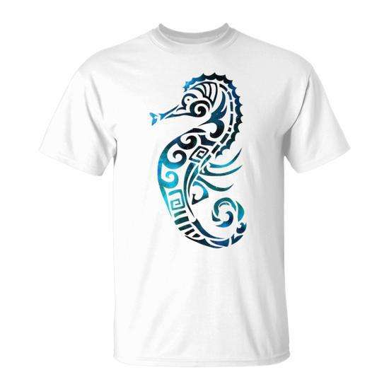 T-shirt Seahorse Ocean Design, imprimé artistique tribal turquoise, unisexe, col rond, manches courtes, impression numérique