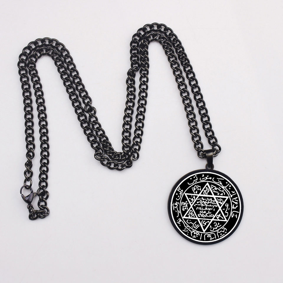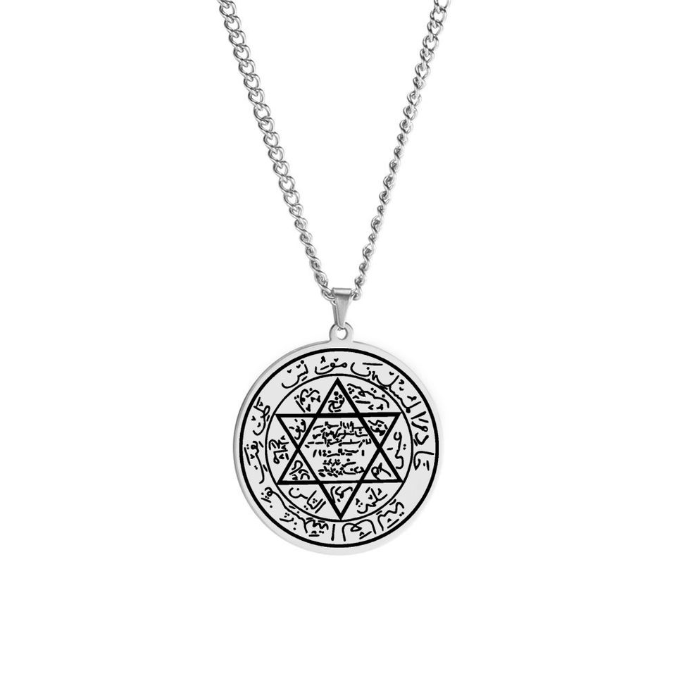 Seal of Solomon Star of David King Solomon Seal Protection Talisman Jewelry Laser Engraved Stainless Steel Pendant Necklace