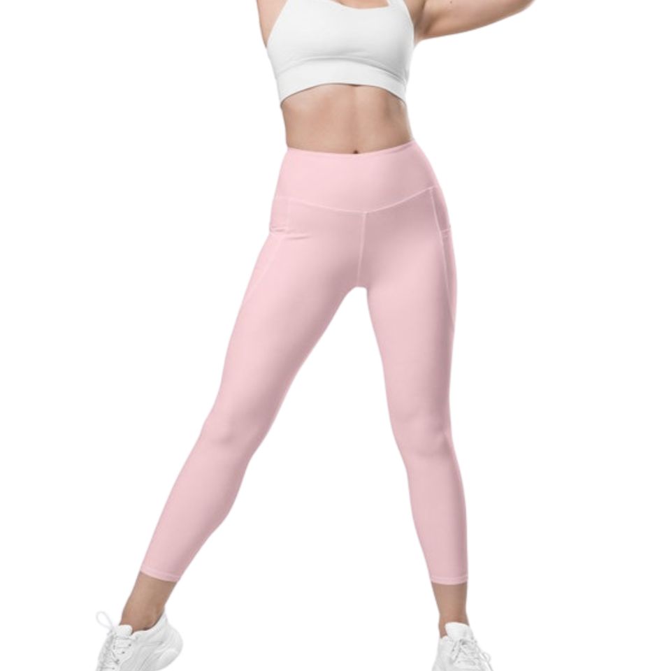 Seamless Eco-Friendly Light Pink Women's Gym Leggings Pockets Cute Feminine Yoga Fitness Legging Fashionable Yoga Workout