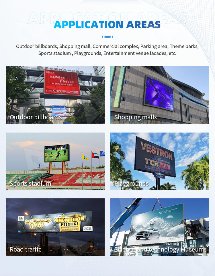 Affichage de plats, Bienvenue affichage, Libre-service affaires, Hall d'exposition, L'aéroport, Métro, Ascenseur, Fournitures de Restaurant et D'hôtel, Éducation, Traitement médical, Publicité publier, Panneau d'affichage extérieur, Complexe commercial, Aire de stationnement, Parc à thème, Stade sportif, Façade du lieu de divertissementUtilisation