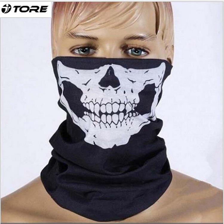 Bandeau magique multifonctionnel sans couture, motif crâne imprimé blanc, masque facial, écharpe, casquette de sport unisexe pour activités de plein air