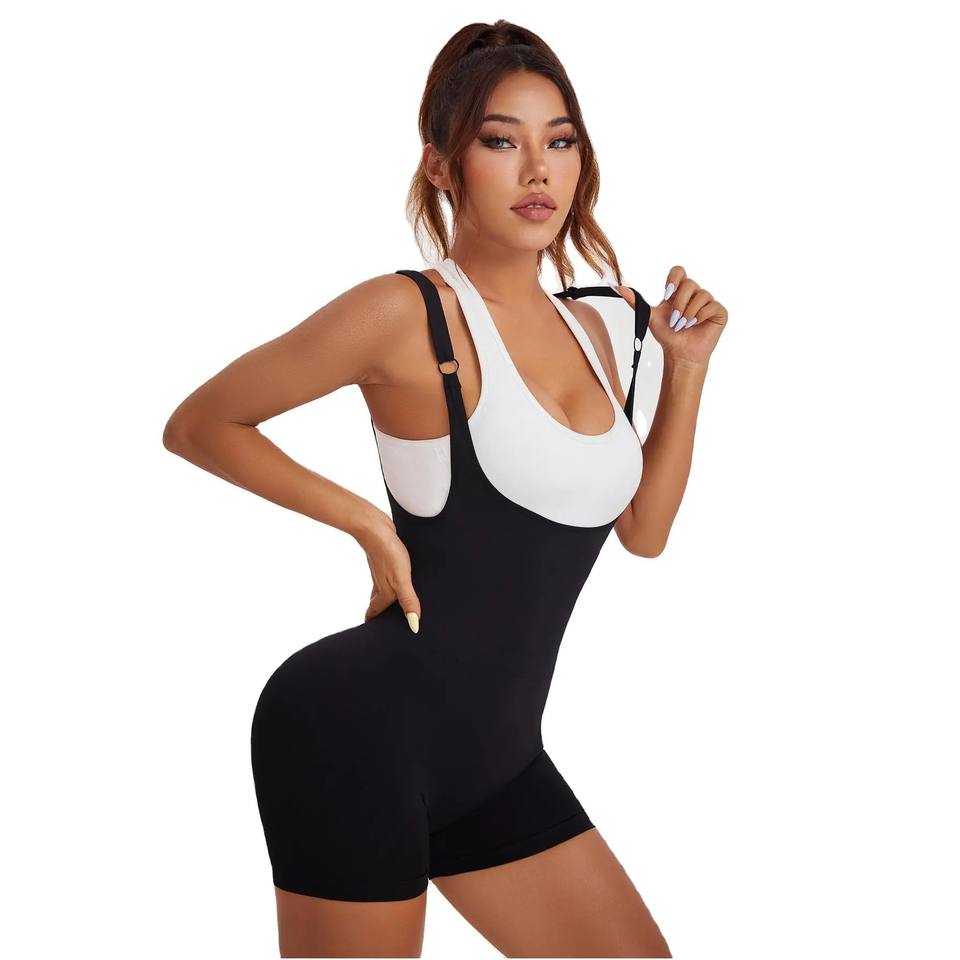 Combinaison de sport sans manches pour femme, couleur unie, séchage rapide, en Spandex/Nylon, coupe ajustée, idéale pour l'entraînement et la gym