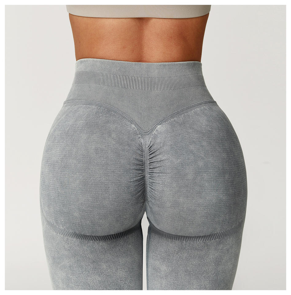 Pantalon de yoga sans couture délavé au sable taille haute collants de levage de hanche course à pied sport Fitness Leggings Scrunch leggings pour femmes