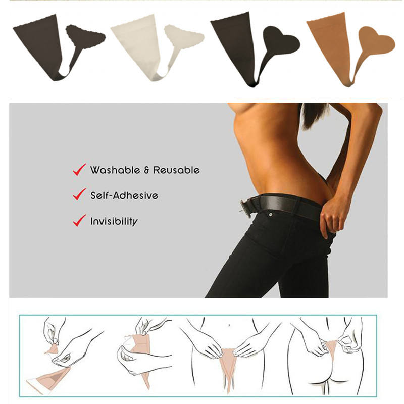 Seamless Self-Adhesive C String Tangas Heart Shape Strapless Stick-On Panties for Women Plain Dyed Thongs No Line for Adults