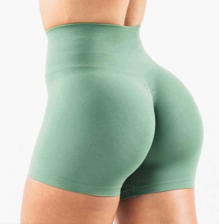Shorts de course sans coutures pour femmes, bleu français, taille haute, effet froncé, pour le yoga
