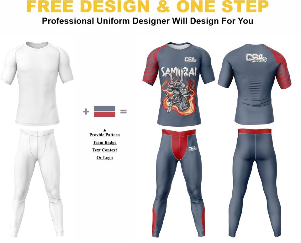 Ensemble de compression à manches longues avec impression par sublimation sans couture, qualité supérieure, respirant, vêtements de sport, rashguard et legging MMA