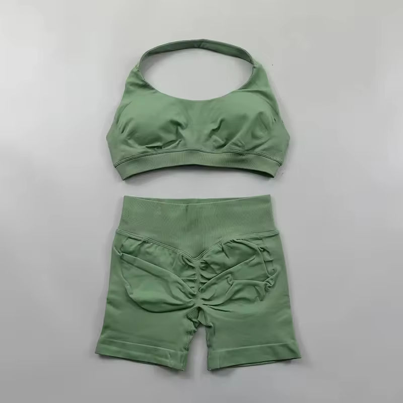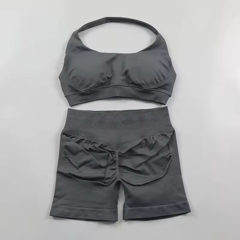 Ensembles de yoga sans couture, tenues de sport côtelées, débardeur court et short taille haute, ensembles de fitness et de course pour femmes, ensemble 2 pièces pour femmes