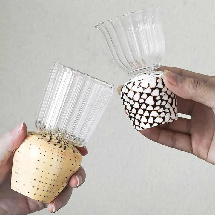 Tasse en coquillage naturel avec insert en verre borosilicate – Tasse créative pour cocktails, idéale pour la présentation en restaurant – Vietnam