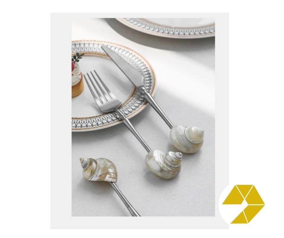 Vaisselle à manger coquillage: Ensemble de desserts en conque de nacre faits à la main Prix de gros exclusifs sur cuillère coquillage Fourchette en nacre