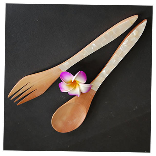 Seashell Jewel Display Cuillère et fourchette en bois naturel avec MOP Motive Mosaic Art pour cadeaux