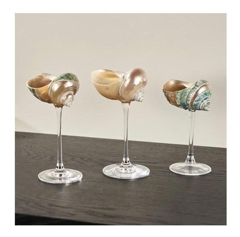Verres à pied faits à la main de luxe en verre de mariage de coquillage avec le style naturel de gobelet de coquille idéal pour la décoration et la fête d'événement de célébration