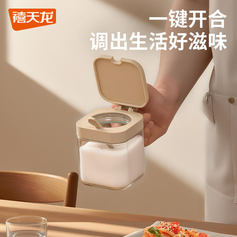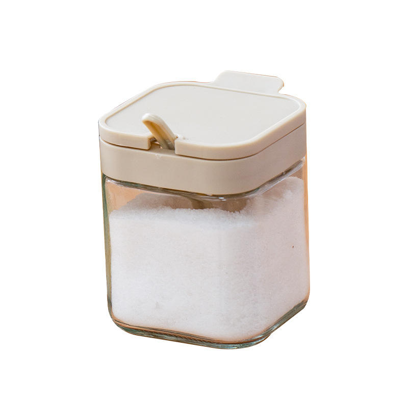 Pot à épices carré en verre avec couvercle à clip hermétique pour condiments solides, récipient de rangement de cuisine avec cuillère