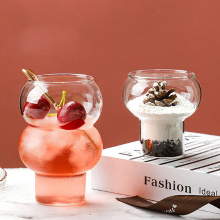 Seaygift logo personnalisé yaourt milkshake jus tasses en verre clair en forme de gourde crème glacée café dessert verre gobelet tasse