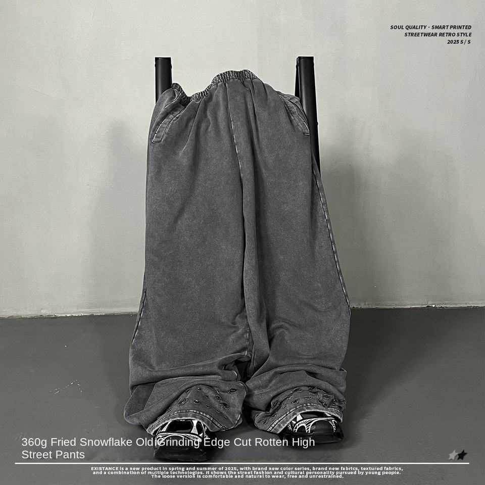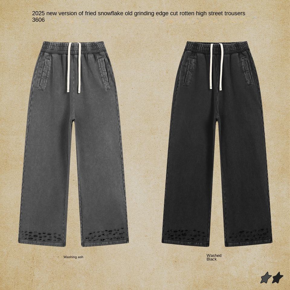 Sebanda 2025 flocon de neige frit fait vieux bord de meulage coupe cassé haute rue pantalon personnalité rue pantalon droit hommes