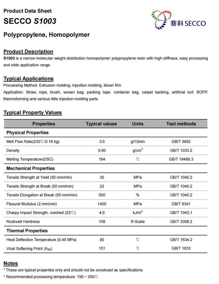 Distribution étroite de poids moléculaire, haut stiffnesCaractéristique