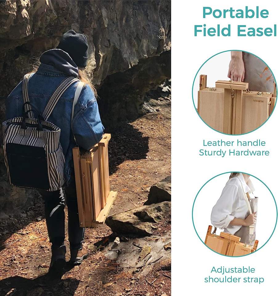 Secolorart Art Factory Vente directe en bois de hêtre Français Boîte Chevalet Peinture Italien Chevalet Avec Palette de Tiroir et Roue