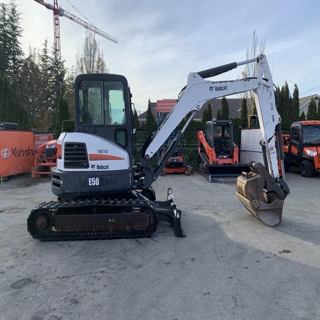 Mini-excavatrice Bobcat E50 d'occasion, 5 tonnes, sur chenilles, à vendre. Système hydraulique puissant, faible nombre d'heures, excellent état.