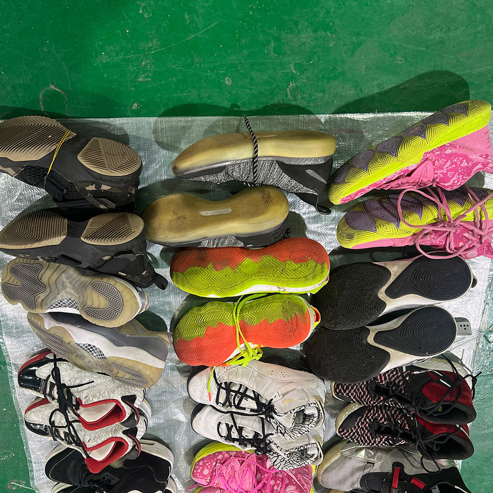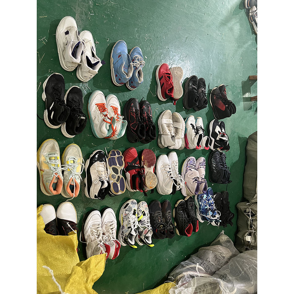 Chaussures de sport mixtes synthétiques respirantes d'occasion de marque originale pour hommes, style basketball, vente en gros en vrac