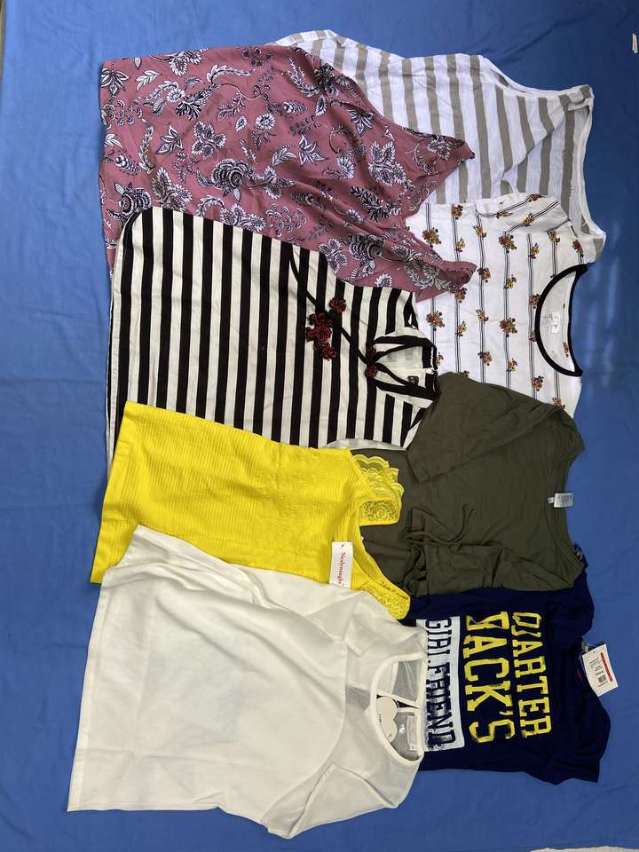 Tissu d'occasion recommandé chemise pour femme d'occasion mélange de types et de couleurs t-shirt à manches courtes chemise en coton pour femme
