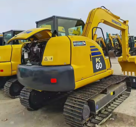 Mini-excavatrice d'occasion d'origine 6 tonnes Komatsu PC60, pompe de boîte de vitesses en bon état, faible nombre d'heures de fonctionnement (0-2000h), modèle 2021
