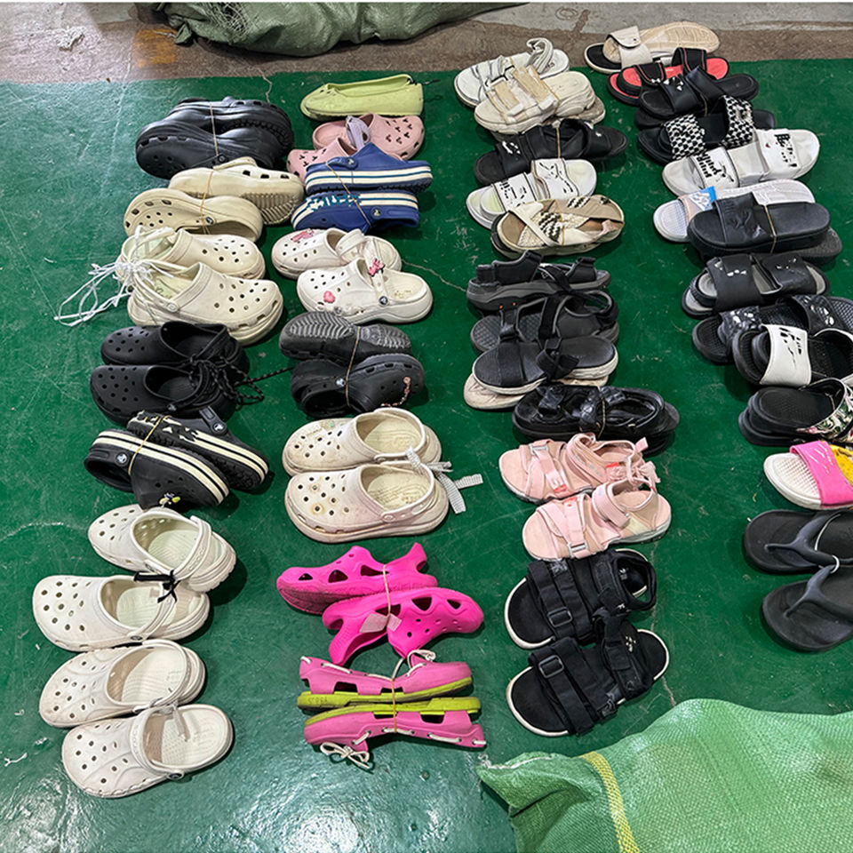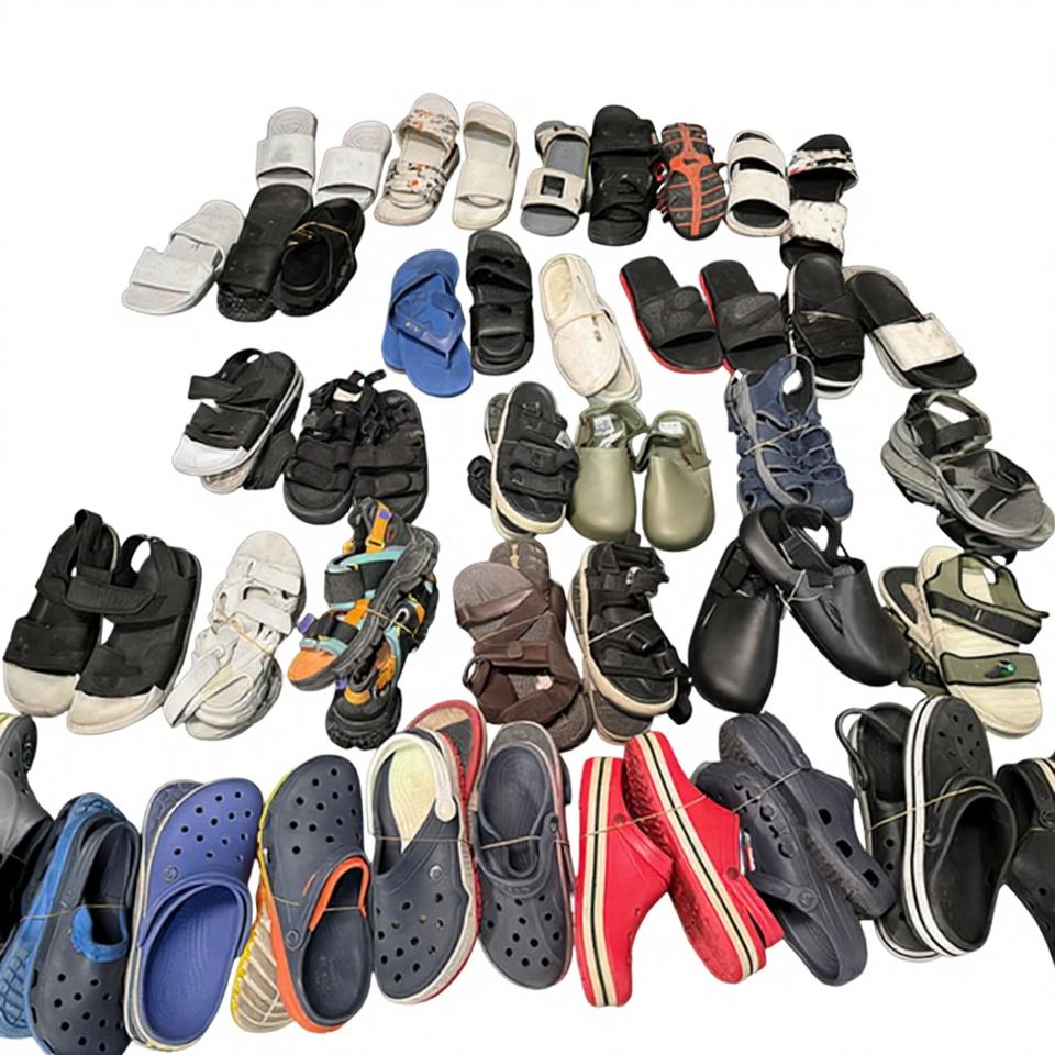 Sandales plates décontractées d'été d'occasion à bout ouvert en synthétique, type claquettes, en balles de gros, chaussures de marche