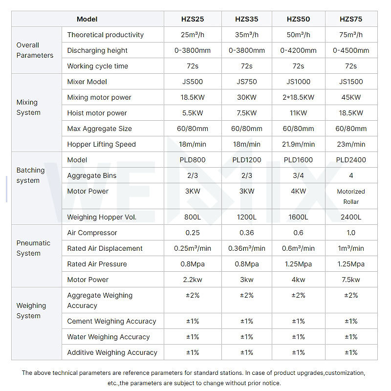 JS1500 Concrete Mixer, PLD2400 Batching Machine, Screw Conveyor, Cement Silo, centralized control systemCore Components