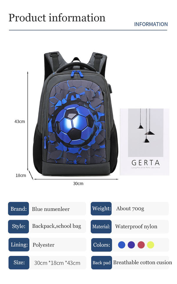Sac d'école secondaire coque dure football réduction de charge garçon sac à dos grande capacité avec petit stylo sac ensemble sac en gros